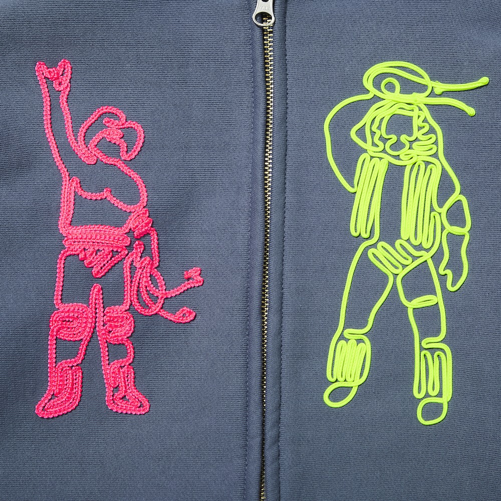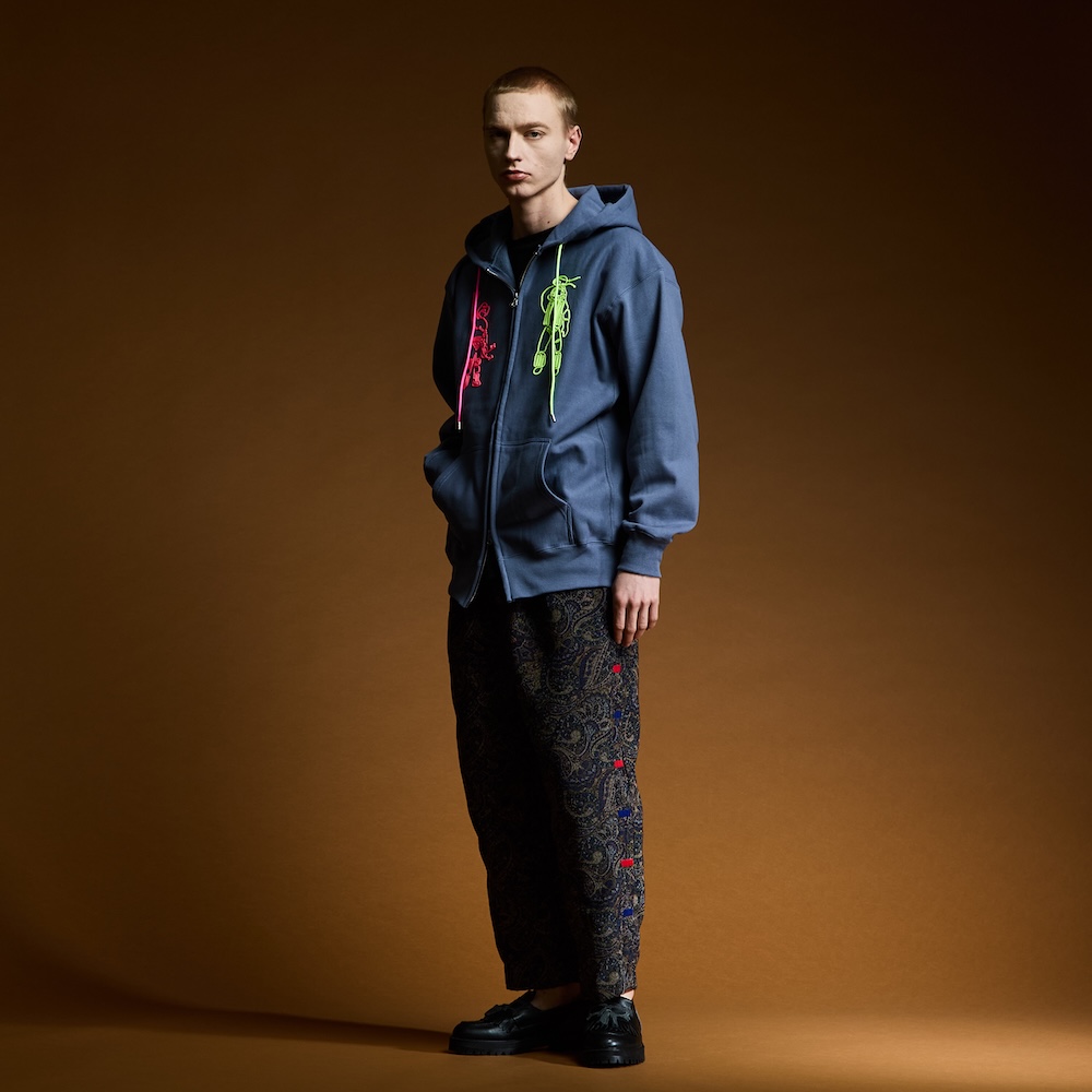 CHOUZYU Cord Embroidery Zip up Hoodie